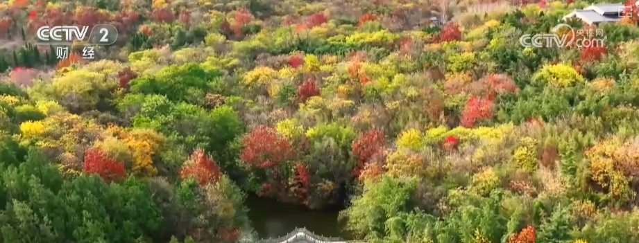 在位于江苏徐州新沂市的马陵山,眼下,这里层林尽染,银杏金黄、枫香绯红,南方的樟树、毛竹与北方松柏的交织映衬。